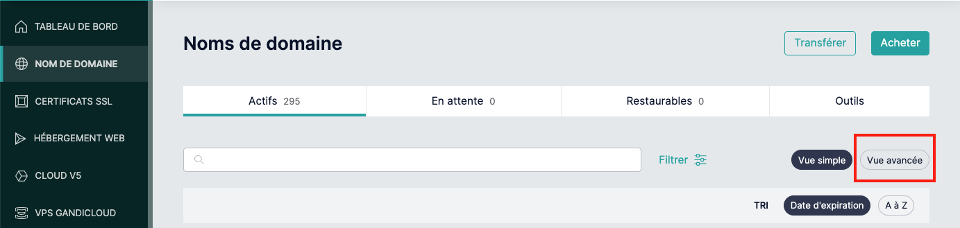 - Log in to your Gandi account, then go to "DOMAIN" in the left-hand menu.