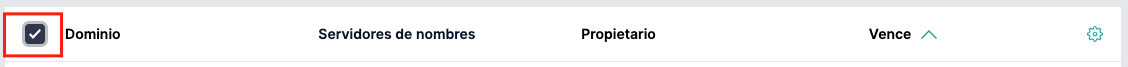 Para seleccionar varios dominios, haga clic en la casilla situada en la parte superior de la tabla, a la izquierda de "Dominio":